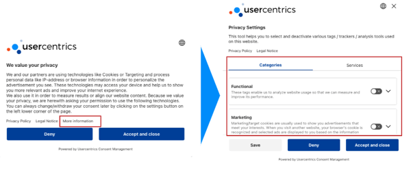 Clear and detailed communication: Provide users with the option to access more information in the second layer of your consent banner to enable transparent communication and granular choices.
