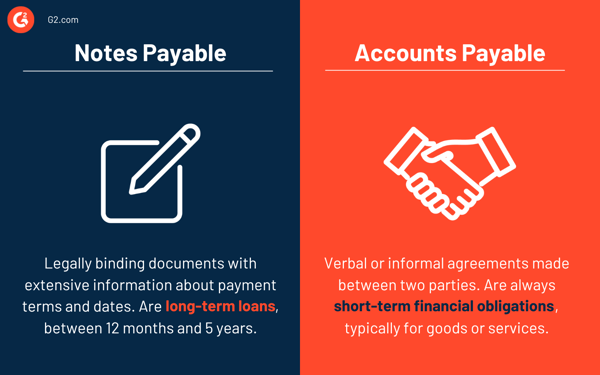As accounts payable are typically for smaller amounts, these are verbal or informal agreements made between the two parties. Notes payable, like other promissory notes, are legally binding documents with extensive information about payment terms and due dates for the repayment of borrowed funds.